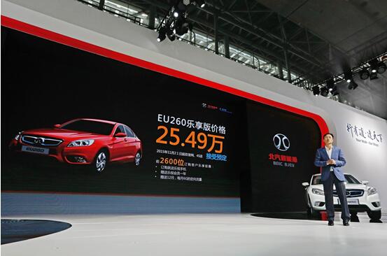 11月20日,正值2015廣州車展開幕當天,北汽集團發布了一款全新A級純電動轎車產品EU260。新車基于薩博平臺打造,總續航里程達到260公里,搭載領先的i-link互聯科技,產品實力大幅提升,傳遞出北汽集團為確保新能源發展領先優勢的堅定訊號。