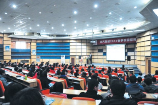 3月18日下午,北汽集團2013 春季校園招聘首場宣講會在北京理工大學舉行,拉開了北汽集團2013春季校園招聘序幕。首場宣講會現(xiàn)場火爆,原本能夠容納500人的招聘會現(xiàn)場,擠進了600多名應屆畢業(yè)生。隨后,陸續(xù)在上海交通大學、北京工業(yè)大學等高校開展的校園招聘依然是場場爆滿。