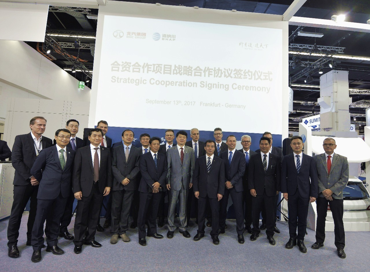 2017年9月13日,北汽集團攜旗下北京海納川汽車部件股份有限公司亮相第67屆法蘭克福車展,展示了北汽集團自主研發的“智能化、電動化、輕量化”汽車零部件產品。這是北汽集團在國際重量級舞臺上對自身產業鏈綜合能力和前瞻科技的一次重要展示,是“集團化2.0”戰略在海外的重要實踐。