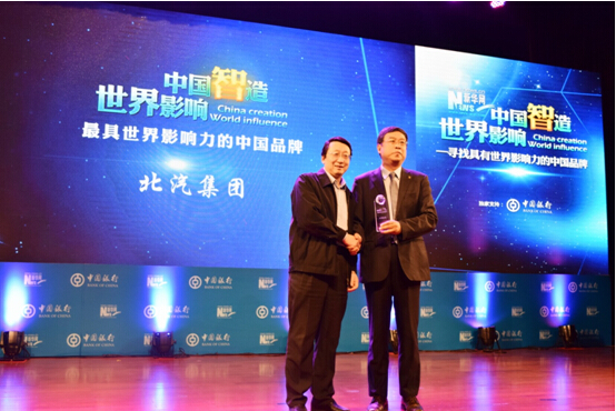 12月26日,“中國智造•世界影響”——尋找具有世界影響力的中國品牌頒獎盛典在北京釣魚臺國賓館隆重舉行,北京汽車集團有限公司(簡稱北汽集團)榮獲“最具世界影響力中國品牌”稱號。